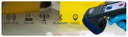 - skenování čárových kódů, NFC, HF a UHF RFID štítků;